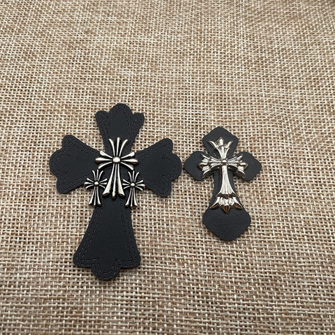 맞춤형 새로운 패션 브랜드 디자인 하드웨어 PU 가죽 블랙 크로스 자수 옷 장식 액세서리 패치
